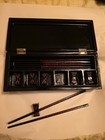 Vintage Set Of 6 Handmade And Hand Painted Chopsticks & Stands 10" Laquered Box