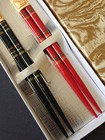 2 Pairs Of Japanese Lacquer Chopsticks Hair Sticks Gift Set Stripe Made In Japan