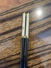 Vintage Chopsticks In Box Chinese Cloisonne Look Floral Enamel Black Green