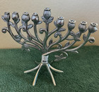 Lenox Menorah Judaic Blessings Metal 9” H 10” W Flower Menorah Tree Hanukkah Nib