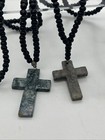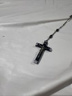 Vintage Rosary Cross Necklaces Marble Picasso Stone Black Handmade Beads