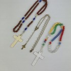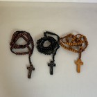 Wooden Rosary Necklaces Set Of 3 Catholic Prayer Beads With Crucifix