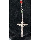 Our Lady Of Guadalupe Rosary Beaded Necklace Red Wood Silver Tone Crucifix Italy