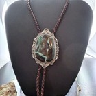 Vintage Western Cowboy Agate Sun Pattern Bolo Tie Wedding Necklace Leather Rope