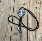 Western Bolo Tie Cross Christian Cowboy Necktie Black Leather Cord For Men