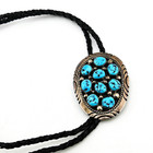 Vintage Tommy Moore Navajo Sterling Silver Turquoise Cluster Bolo Tie Native Ame