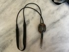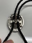 Vintage Western Bolo Tie Black Braided Cord Silver Concho Southwestern Rodeo