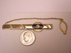 White Rhinestone & Gold Tone W/chain Quality Vintage Tie Bar Clip Simple Plain