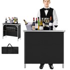 Folding Bar W/storage Shelves-38.5" Portable Table, Removable Skirt & Carry Bag