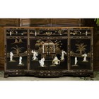 Us Seller - Black Lacquer Mother Of Pearl Oriental Sideboard