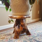 Rustic Cedar Root Plant Stand & Mushroom Stool Natural Shaped Side Table 13.5"h