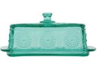 Pioneer Woman ~ Adeline ~ Embossed ~ Glass ~ Turquoise ~ Covered Butter Dish