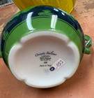 Czech Ceramic Green White Hand Painted Flower Tea Coffee Sugar Pot Vintage