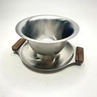 Vintage Mid Century Stainless Steel 18-8 Gravy Boat With Wood Accents Japan