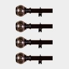 42-126 Inch Brown Adjustable Metal Curtain Rod Set Marble Finials