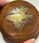 Vintage Wood With Inlaid Brass Birds Desk Top Paperweight Dome