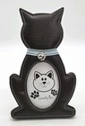 Mud Pie Cat Picture Frame 7.25"t Brown Faux Leather Aqua Collar 2.5"w X 3"t Pic