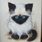 Vintage Siamese Cat Painting Signed E Boscheck Framed Blue Eyes Kitten Art