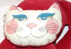 Vintage Kitsch Cat - By Kasia, 1977 Face Pillow W/ Bean Bag Body, Red