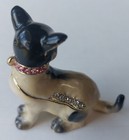 Siamese Cat Enamel With Green Eyes Bejeweled Ring Trinket Box Magnetic Closure