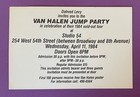 Rare Van Halen Jump Sold Out Tour Party At Sudio 54 Promo Entry Pass From 1984