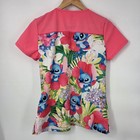 Disney Stitch Scrub Top Women Xs Pink Tropical Hibiscus Floral V-neck
