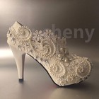 Su.cheny 3" 4 " Heel White Ivory Lace Pearls Wedding Shoes Pumps Bride Size 5-11