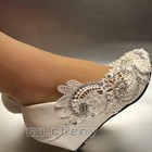 Wedding Bridal Shoes - 2" Wedge White Crown Lace & Pearls & Crystal Size 8.5