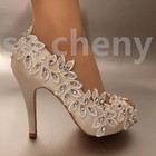 Su.cheny Heels Satin White Ivory Lace Gypsophila Open Toe Wedding Bridal Shoes