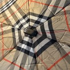 Vintage Burberry Umbrella Leather Black Handle Beige Outside Plaid Inside New