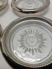 Vintage Set Of 4 Leonard Silver Plate Crystal Coasters Starburst Pattern