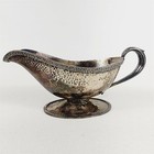 Vintage Collectible Hammered Finish Silver Plated Gravy Boat With Pedestal Base