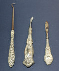 Lot 3 Antique Empire Arts Silver Manicure Tool Sterling Silverplate? Button Hook