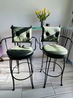 Vintage Mcm Spun Metal Wicker Look Round Glass Top Table With 4 Chairs/ Cushions