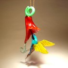 Blown Glass Figurine Bird Hanging Blue & Yellow Hummingbird Red Flower Ornament