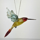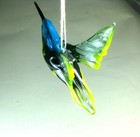 Hand Blown Glass Bird Hummingbird Hanging Figurine Ornament Art Blue Yellow 4.5"