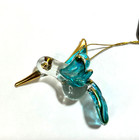Blown Glass Hummingbird Ornament Blue W/gold Accents 2”