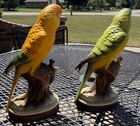 Vintage 10.25" Ceramic Yellow Green Orange Parrot Statue Set Of 2 Japan 🦜🦜