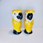 Lot Of 2 Vintage Tiki Yellow Parrot Macaw Vase Ceramic Cup Tropical Decor