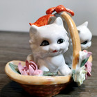 Vintage Two Kitschy Kittens Basket Flowers Cats Porcelain Figurine