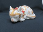 Japanese Kutani Porcelain Sleeping Cat Figurine 6 1/2"