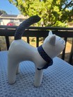 Vtg Enesco Ceramic White Cat Figurine Blue Polka Dot Fabric Tail Set Of 2 1980's