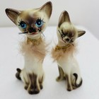 Vtg 2 Anthropomorphic Siamese Cat Pottery Figurine Whiskers Blue Eyes 5.5” T