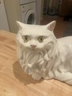 Vintage Mcm White Persian Ceramic Cat Yellow Eyes Statue Figurine
