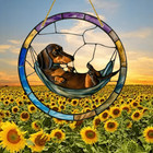 1 Piece Well Behaved Cute Dachshund Hammock Acrylic Round Light Catcher