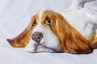 Handcrafted Studio Pottery Ceramic Bassett Hound Dog Canine Sculpture 13"