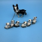 Adorable Vintage Mcm Boston Terrier Ceramic Mom Dog W/6 Puppies Chain Japan