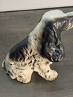 Vintage Ceramic Black & White Spaniel Dog Figurine Hand Painted 8" Tall Sitting