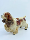 Vintage Spaghetti Ceramic Cocker Spaniel Dog Brown White Red Figurine 5” Tall 8”