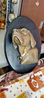 Vintage 18” Wolf Head Plaster Sculpture Surrounded W/animal Hide Signed. Rare